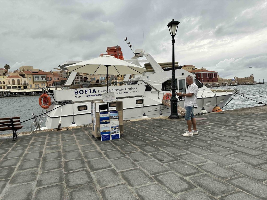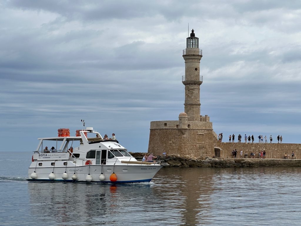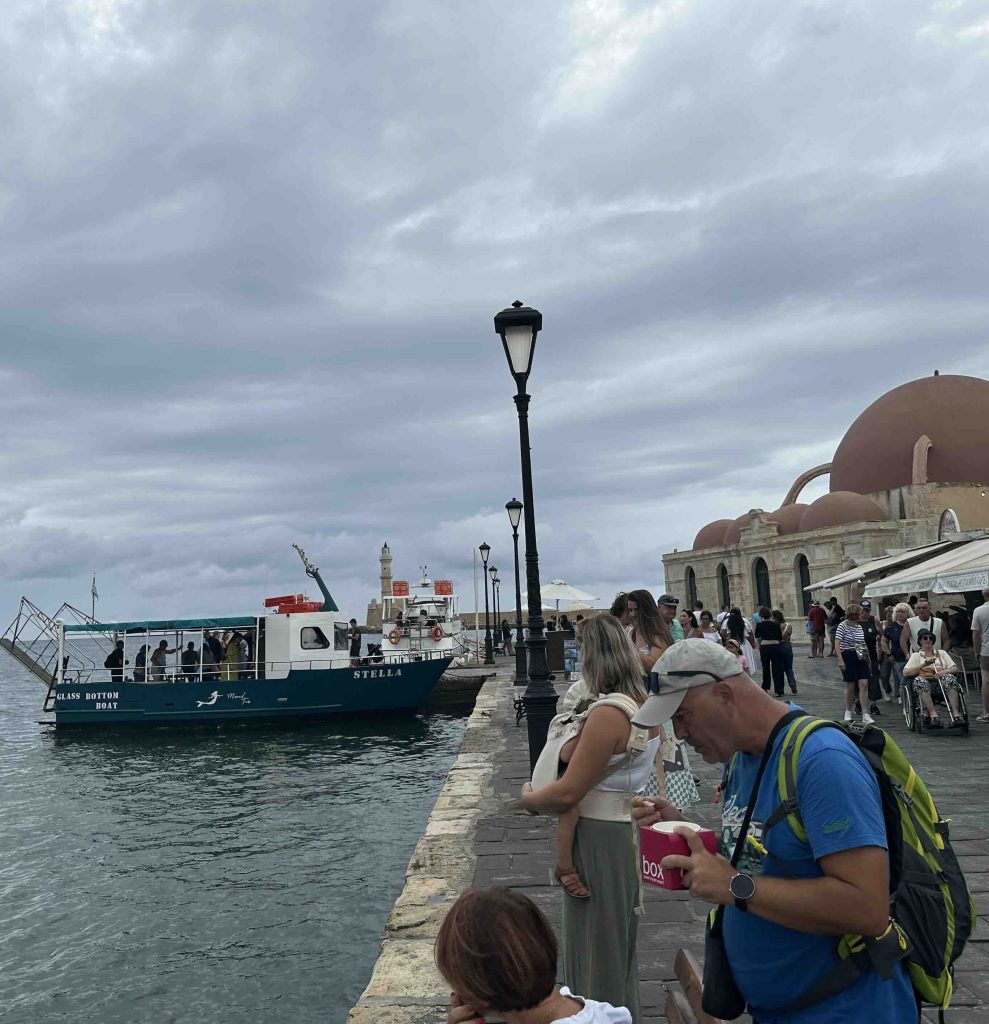 Para que usted sepa. No es solo bajarse del crucero y listo. La verdad es que tan pronto uno desembarca, un bus lo llevará en un recorrido de media hora pasando por casas que le recordarán Chile en los años ´50. Hasta llegar a Chania. En el punto en que lo deja el bus, usted deberá caminar otros 10 minutos más hasta topar con el centro histórico de esta ciudad llena de vida frente al mar. Su historia reciente data de 1898, cuando Creta da los primeros pasos hacia la independencia y unión con Grecia. Fue la primera capital de un estado semiautónomo en 1898. Pero, su status duraría solo hasta 1971, fecha en que Heraklión se convierte en la capital oficial. A pesar que fue bombardeada durante la II Guerra Mundial, Chania permaneció como una de las ciudades más bonitas de Creta. Hoy sus antiguas residencias se han convertido en hoteles, tiendas y restaurantes que lo sorprenderán mientras usted recorra sus callecitas llenas de turistas, entre quienes a veces es hasta difícil caminar.