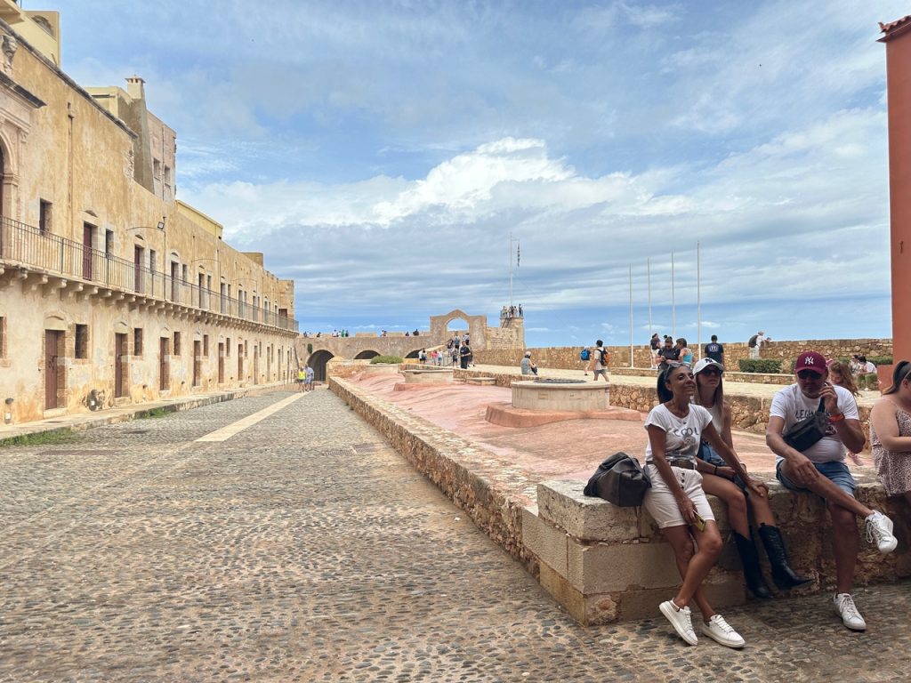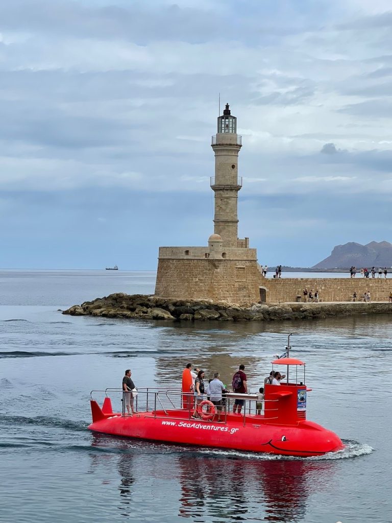 Así, de lleno. Frente al mar, usted estará en medio del Viejo Puerto Veneciano, la Mezquita de los Jenízaros y el Faro (ícono de la ciudad), todo frente a una costanera en forma de media luna, donde la gente reserva hasta los puestos de primera fila de los restaurantes para observar a la gente pasear. Un espectáculo que se extiende desde las murallas de origen bizantino a mano izquierda hasta sus arsenales a mano derecha, que recuerdan el pasado militar, naval y comercial que Chania tuvo durante siglos.