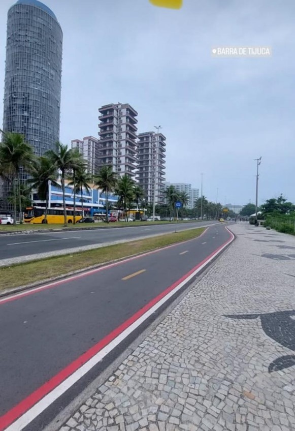 Segundo día, Barra de Tijuca, ubicada al norte de Ipanema, dicen que es la playa más linda de Río. Si les cuento que estábamos absolutamente solas en una playa de Brasil, ¿lo creerían?, salvo por un pequeño detalle, estaba lloviznando (leve), pero fue literal. No hacía una gota de frío, así es que estuvimos descansando y admirando un paisaje más exclusivo, y un mar que parecía piscina, sin olas. Era como estar en el paraíso (aunque nunca he estado, ni espero estarlo todavía). Caminamos toda la playa, y a la vuelta, por la costanera maravillosa, pero que al igual que en las otras playas, el respeto por el cruce de peatones no existe. Simplemente había que pasar corriendo y aquí el vehículo tiene la preferencia.
