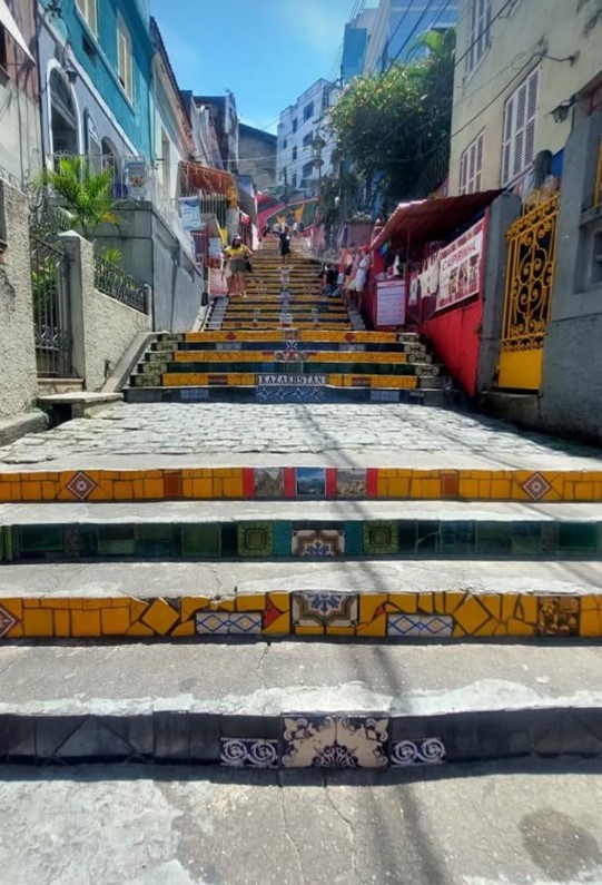 Y por supuesto, una parada en la famosa escalera de Selarón, se hizo conocida internacionalmente por la llamativa decoración que le hizo el artista plástico chileno Jorge Selarón, trabajo que inició en 1990 y que continúa en una renovación constante. Considerada por su autor como una obra «viva y mutante», la escalera tiene 125 metros y 215 peldaños, y está completamente revestida de piezas de cerámica de distintos colores, tamaños y formas. Algunas de ellas contienen dibujos en su interior. Costó sacarse una foto sola, pero lo logramos.