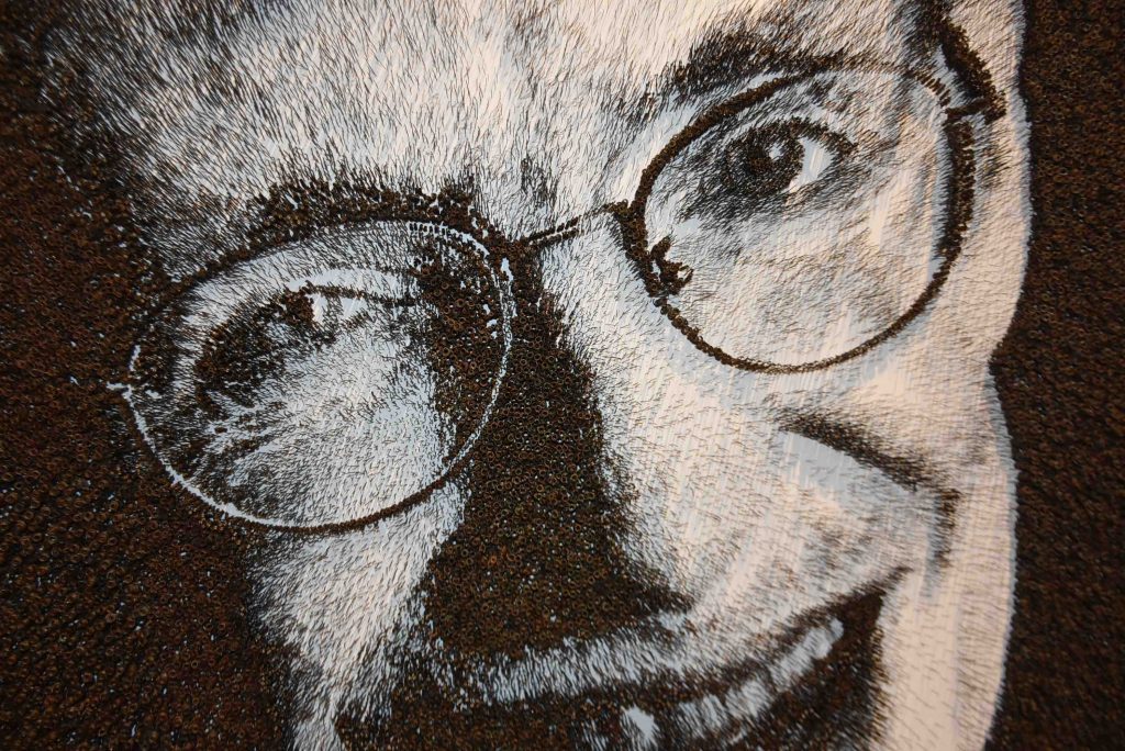 Realmente notables fueron los rostros de Steve Jobs y Stephen Hawkins, obras que se realizaron solo a base de alfileres…