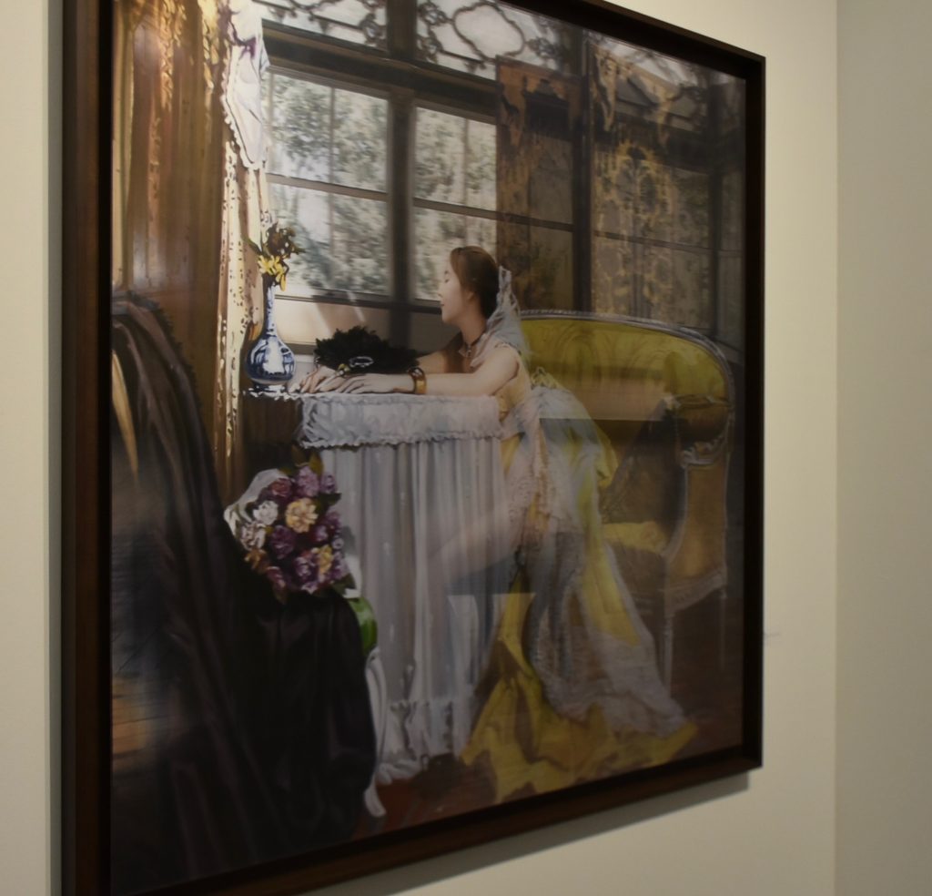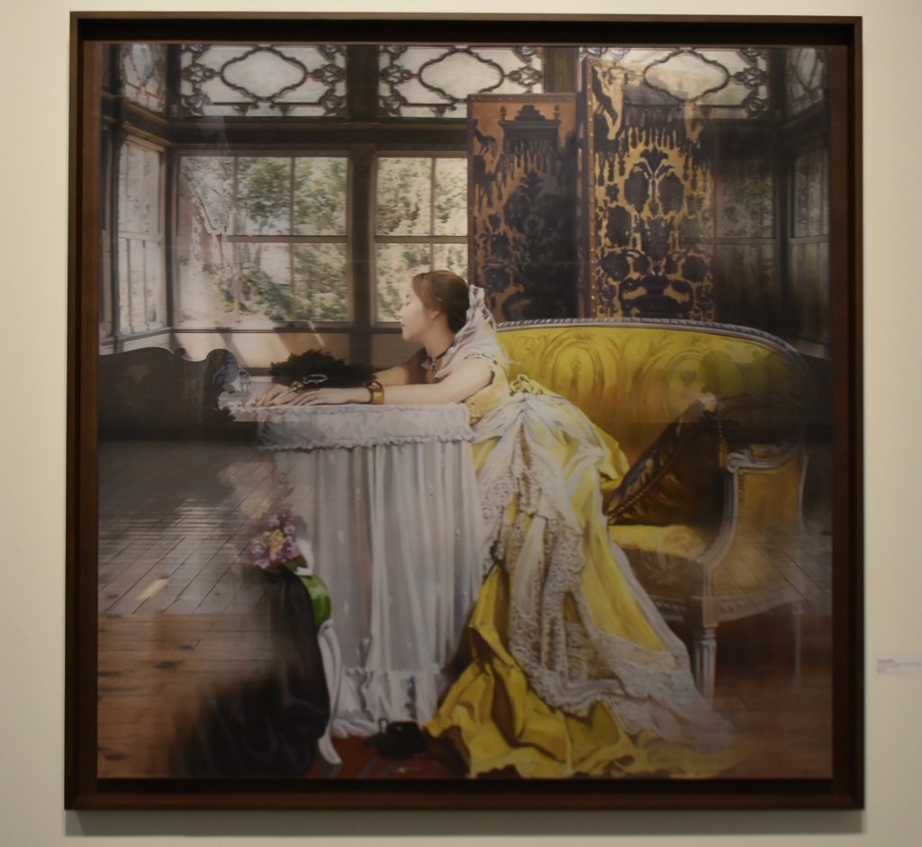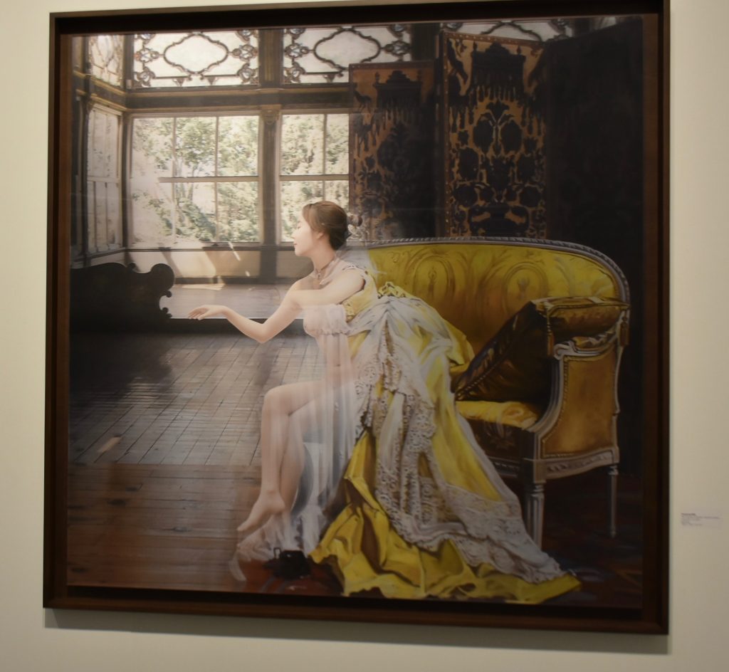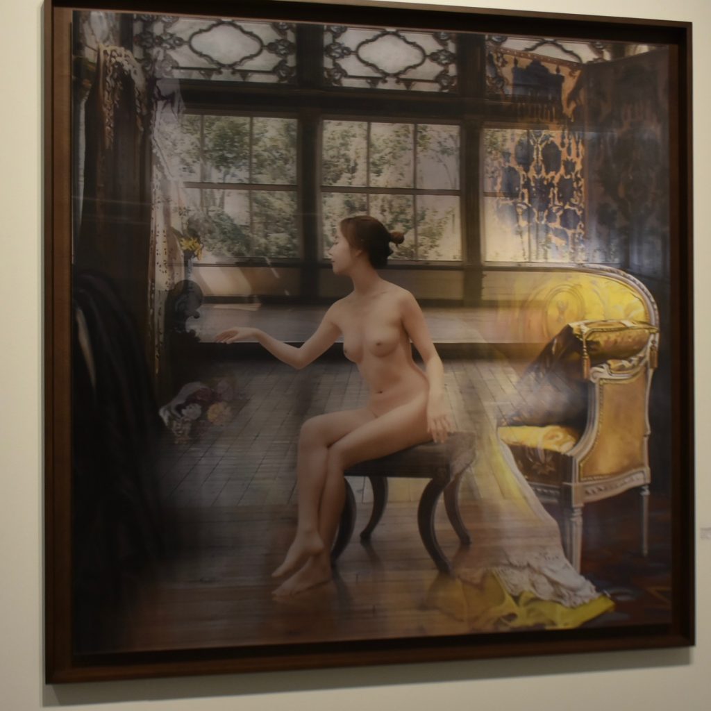 Hubo interesantes efectos especiales. Usted veía clarísimo un cuadro cuando se ubicaba al frente, pero la visión cambiaba al alejarse. Observe el vestido de esta mujer: pareciera desprenderse de su cuerpo a medida que usted camina, hasta visualizarla desnuda desde un extremo de la obra.
