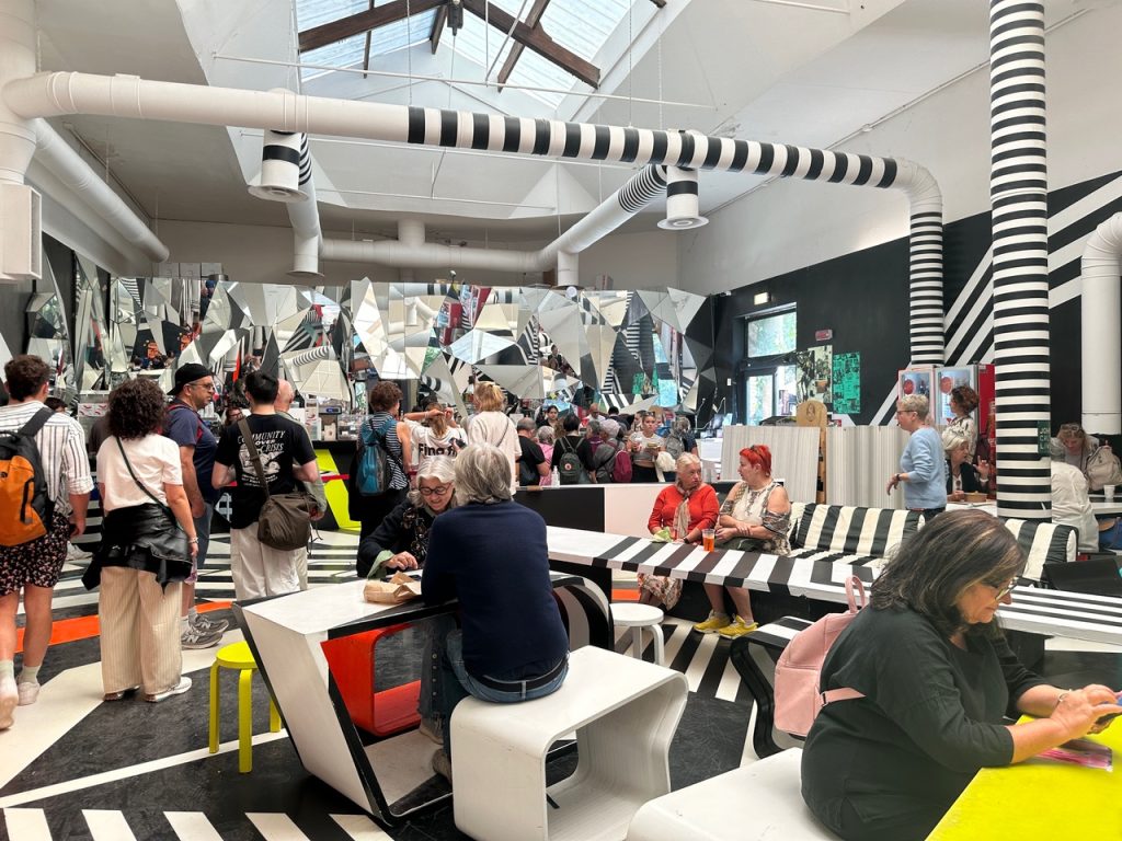 Para descansar un minuto, fue interesante hacer un alto en su Cafetería, diseñada a la altura de un evento especial. Encontrar un lugar para sentarse era otra historia. Sin problemas, la gente se sentaba después en cualquier, ya fuese en el pasto o en las gradas exteriores de espacios cercanos.