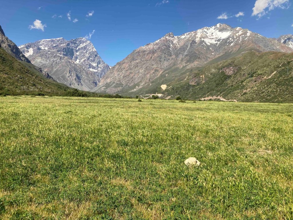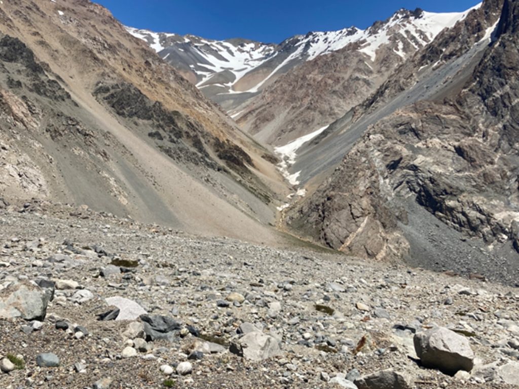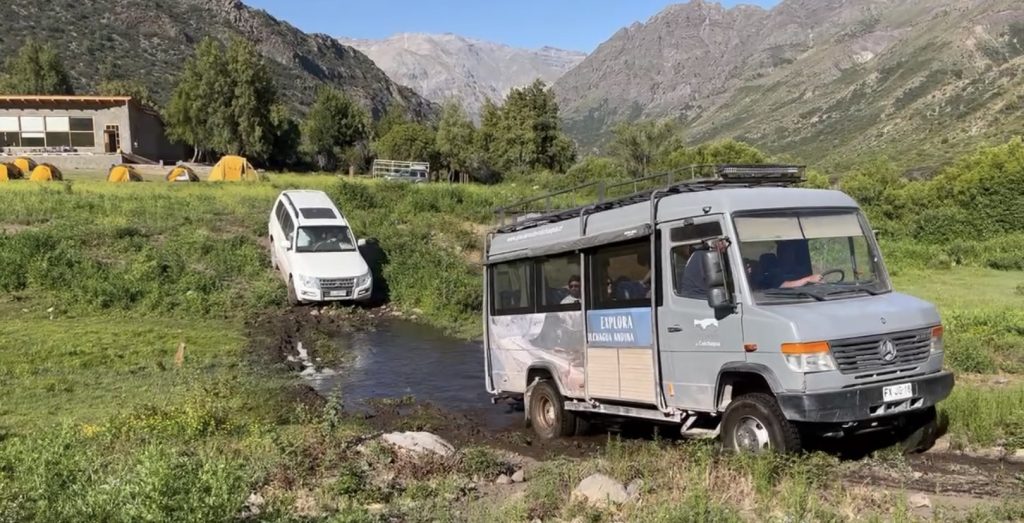 Desde Los Maitenes, donde se ubicó el campamento Alfa entonces, iniciamos una ruta cordillerana que permite avanzar en un vehículo a tracción hasta el punto por donde bajaron Roberto Canessa (19) y Nando Parrado (23), a unos 2.500 mts. de altura y a unos 20 kms. de distancia. Allí se encontraron con la quebrada que finalmente los llevó al Valle de Los Maitenes. ¡Claro…sin nieve es otra cosa! Recordemos que a ellos les tocaron condiciones especialmente adversas, pues ese año precisamente había caído mucha nieve, por sobre lo normal.