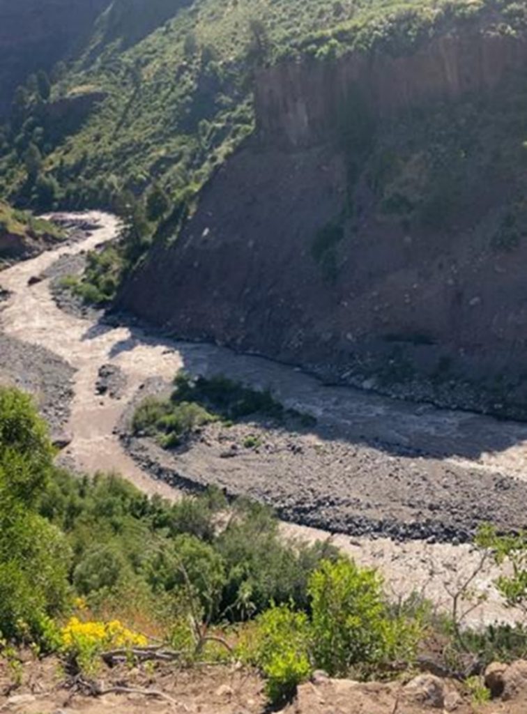 Estuve ahí mismo, donde Nando Parrado -entre arbustos gritaba y agitaba sus brazos desplazándose con notoria dificultad al borde del acantilado- allí se arrodilló. Es difícil imaginar cómo pudieron comunicarse, porque el ruido del río y la distancia impedían escuchar con claridad lo que gritaba desde lo alto del barranco. Por eso es que, habiendo hecho contacto, el arriero les hizo seña que volvería “mañana”. “Mañana”, esa sola palabra que escucharon les permitió pasar su primera noche llena de esperanzas.